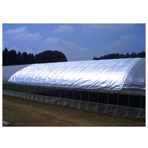 夏期のハウス環境を整える農涼シート。アルミ製の専用遮光資材です。高い遮熱力で、猛暑日の収穫作業の負担が軽減されます。 UVカット率98%で日焼け対策に最適です。葉物収穫などの際のハウス外部遮光にご使用ください。軽量でシートの移動も簡単です。