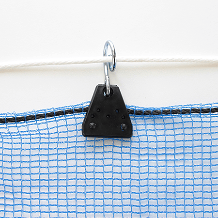 ダイオクリップは、ネットをカーテン状に開閉する事ができるネット専用の吊り具です。出入り口用や、通気用に開閉したい方におすすめです。目合い2mm以上のネットに取り付けられます。ワイヤーやロープの太さはφ10mm程度まで使用でき、φ5mm以下では吊り具を設置した後でも通すことができます。ドライバーで取り外しができ、再利用できるアイクリップはポリプロピレン製で軽く、丈夫な吊り具です。