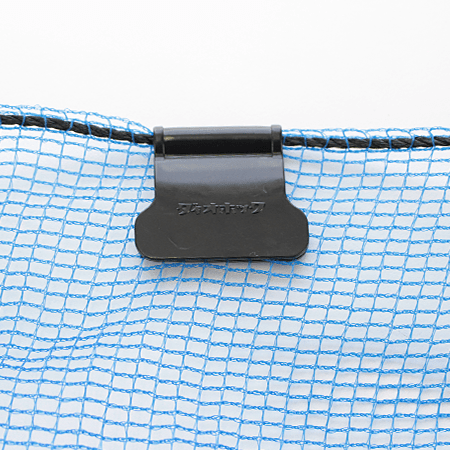 ネット専用の吊り具です。取付ロープとネットを同時に挟み込んで設置します。ダイオパンチよりも幅が広いので、より丈夫にをしっかりと張る事が可能です。網目2mm以上のネットに取り付け可能で、ロープは太さ4mm程度の物まで使用できます。