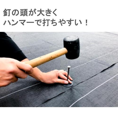 ●金属製の釘なので、堅い地面への防草シートの設置・固定に最適です。