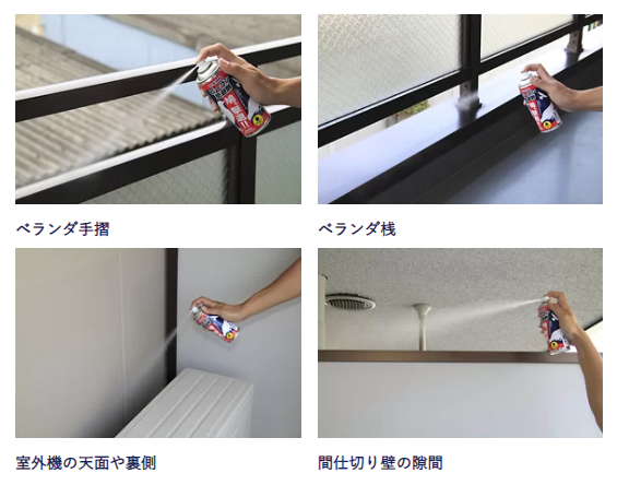 ※鳩は手すりや間仕切り壁、ベランダ、窓枠の上に止まる事が多いので、そこを集中的にスプレーしてください。