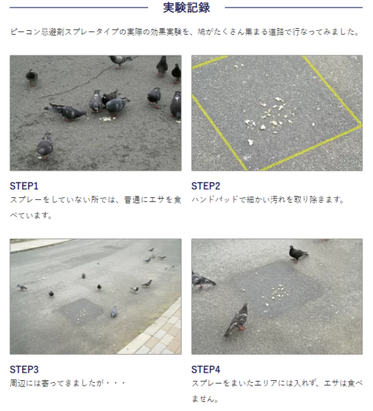※同じところへ繰り返し使用することで、鳩はそこが嫌な場所だと学習するようになり、徐々に近かなくなっていきます。